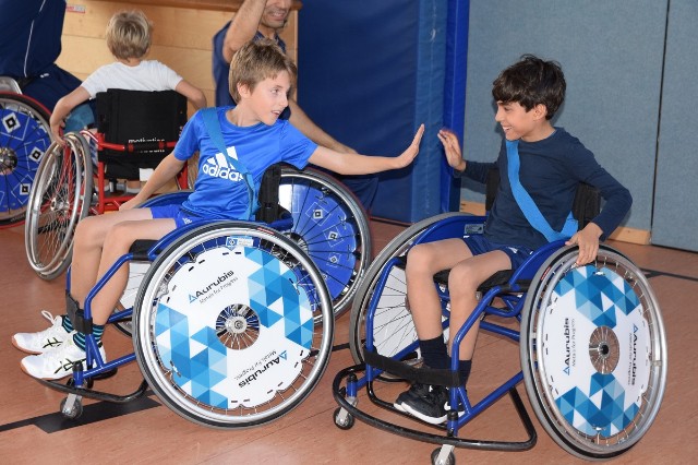 Die Rollstuhlbasketballer der BG Baskets vermitteln spielerisch die Themen Integration und Inklusion.